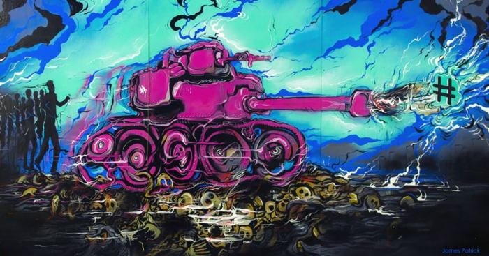 I came across the word Slacktivism, and well.. This pretty much summed up what I wanted to paint. This is a recent painting I finished painted with Spray Cans and Brush Live in Sydney Australia.