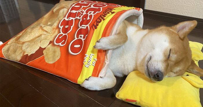 This Shiba Inu Napping Inside A Potato Chip Bag-Like Bed Is The Daily Dose Of Internet You Need Today (16 Pics)