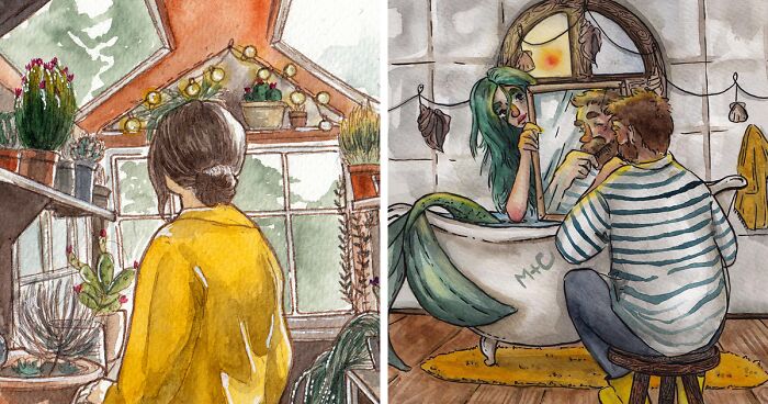 I Left My Job To Be A Full-Time Illustrator, Here Are 30 Cute Moments I Created With Watercolor And Ink
