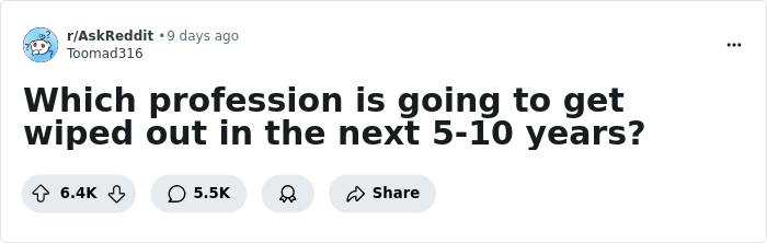 Members of the ‘Ask Reddit’ community recently discussed what they believe such jobs might be. One user asked them what professions they believe are going to get wiped out in the next five-to-ten years, and quite a few netizens shared their two cents on the matter. If your curiosity has been awakened, you can find their answers on the list below.
