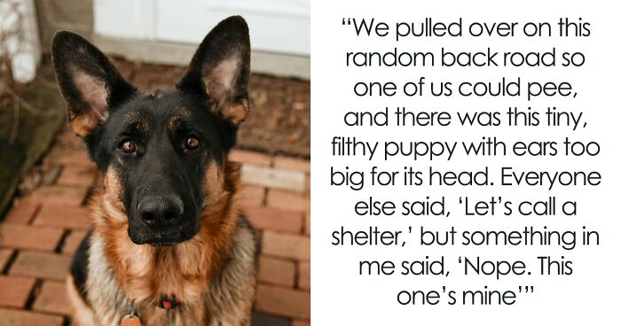 One night, my friends and I were driving around aimlessly like broke 20-somethings do, just talking about life and looking for a gas station with decent snacks. We pulled over on this random back road so one of us could pee, and there, sitting in the ditch like it was totally normal, was this tiny, filthy puppy with ears too big for its head and the saddest eyes I’ve ever seen. Everyone else said, ‘Let’s call a shelter,’ but something in me said, ‘Nope. This one’s mine.’ I wrapped him in my hoodie, bought him a Slim Jim from the gas station, and took him home. That dumb little mutt is now my best friend, emotional support animal, and the only reason I ever go outside. Funny how a snack run turned into a lifelong friendship.