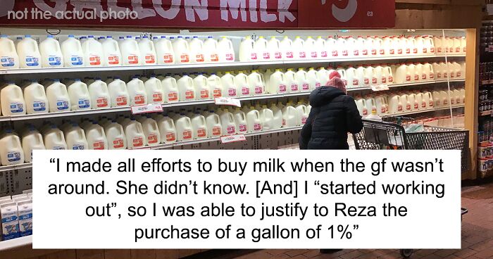 In the ensuing weeks, I proceeded to make all efforts to buy milk when the gf wasn't around. She still didn't know. I "decided to start working out", so I was able to justify to Reza the purchase of a gallon of 1%. We would normally chat for a few minutes and we would ask each other how things were and We would both give vague answers and wish each other well and be on our way.