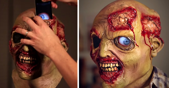 Mark Rober, a former NASA engineer and an ingenious costume designer, has created a brilliant line of Halloween costumes that perfectly combine classic terrifying costumes with modern smartphone technology. A free app on your phone will bring his costumes to life (or undeath, I guess, in the zombie’s case?).