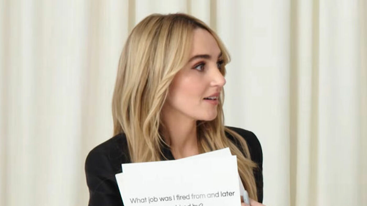 37-year-old Fineman was first in the hot seat and asked her costars: “What job was I fired from & later rehired by?”