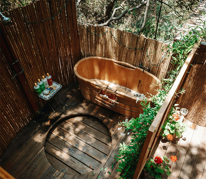 It isn’t limited by walls, so it can be built in various shapes and sizes, making it great for summer evenings. To complete your nature immersion, fill the surrounding space with smooth gravel, as it is better for water drainage. Being outdoors doesn’t mean going public. Keep your privacy with a few evergreen shrubs enough not to fill your soaking tub with leaves but close enough to remind you that this is, after all, an adventure.