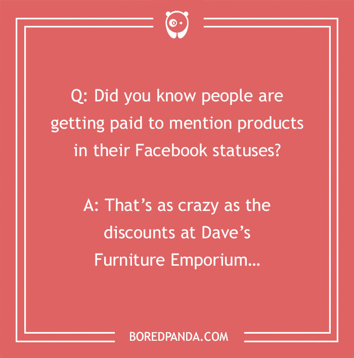 That’s as crazy as the discounts at Dave’s Furniture Emporium…