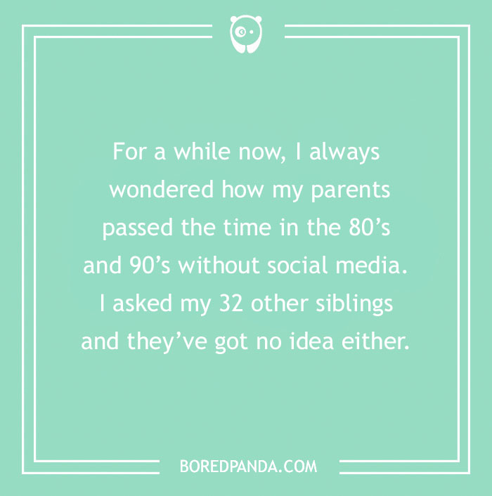 For a while now, I always wondered how my parents passed the time in the 80’s and 90’s without social media. I asked my 32 other siblings and they’ve got no idea either.