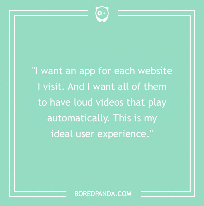 "I want an app for each website I visit. And I want all of them to have loud videos that play automatically. This is my ideal user experience."
