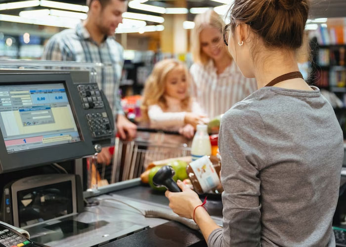 People pack their own groceries in supermarkets. There isn't anyone that packs it all for you at the end of your shop.