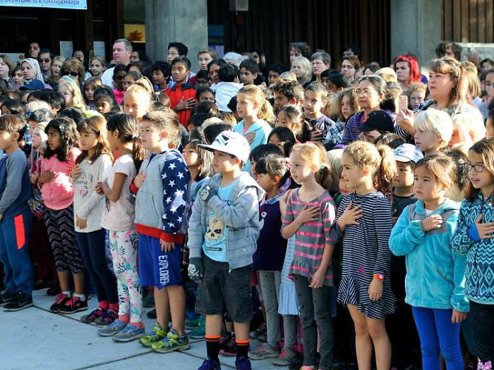 Schools in England don't do anything similar to the Pledge of Allegiance like they would do in schools in America. In general, patriotism isn't as intense as it is in America. So you won't see loads of England flags in front of people's houses like you would see with American flags in America. It's really common for Americans to identify as their heritage instead of their nationality and in England I found it's more common for people to identify with the country they were born in regardless of their heritage.