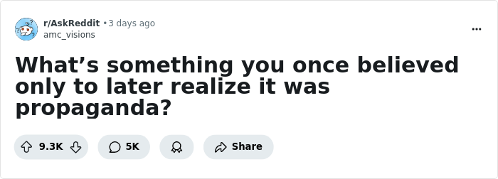 Someone asked the internet, “What’s something you once believed only to later realize it was propaganda?” and netizens revealed the devious disinformation that had them fooled for years. Dive into this collection of some of the most jaw-dropping examples.