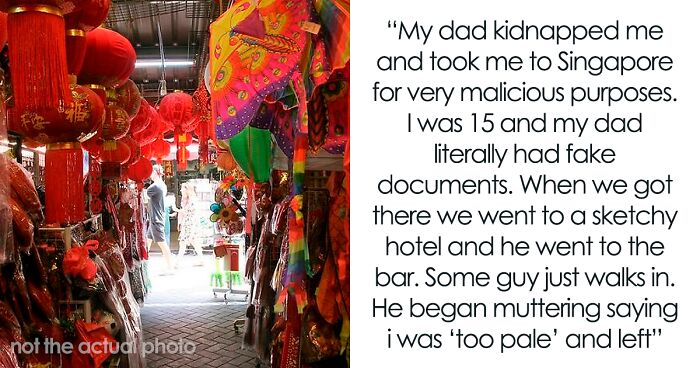 my dad kidnapped me and took me to Singapore for very malicious purposes (i'm sure you could imagine). i was 15 and my dad literally had fake documents and suitcases filled with random clothes. when we got there we went to a sketchy hotel and after 15 minutes he went to the bar. a bit after that, some guy just walks in. i was confused but he began muttering saying i was 'too pale' and 'too old' and he left. i called my dad but he didn't answer so i climbed out through the window and went to the police. they put me on a plane home that same hour.