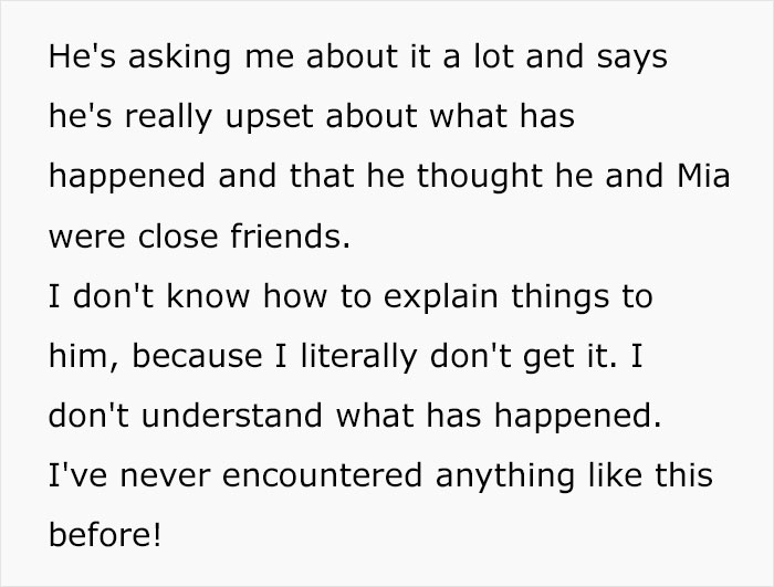 As for the commenters to the original post, they also believe that the situation described by the author is quite common, although, of course, very unpleasant. “If Mia has been drawn into wanting to be in the cool gang, she may have felt that, to be accepted, she has to be seen to reject and dislike anyone who’s not in the cool gang,” one of the responders wrote. “This kind of thing is not uncommon.”