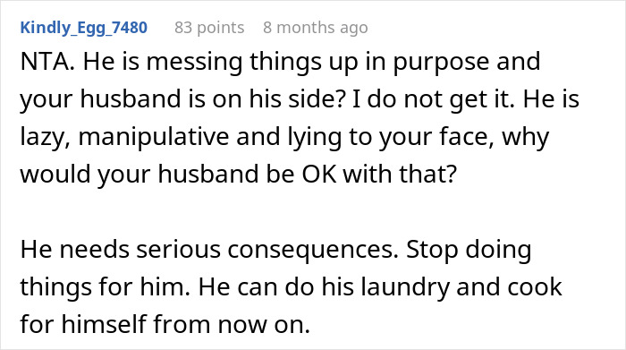 Redditor Odd_Hat_2030 even started wondering if there was something wrong with her son, who just couldn’t get the hang of simple chores. After finding out that he did it on purpose, she used similar logic to get back at him.