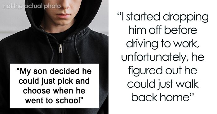 Load More Replies...Or you could, you know, actually talk to your son find out just what he hates about school. Has something changed? Is he being bullied by his teachers? My younger brother started skipping school several times a week, and when my mom talked to him about it, she learned that he couldn't stand being made fun of for his terrible acne. She taught him that he wouldn't have to return to school if he could pass the