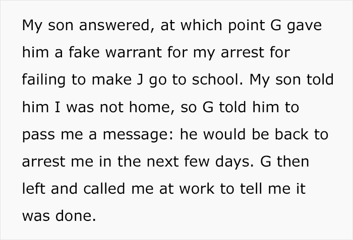 Despite some negative responses on Reddit, she stands by the decision to stage the arrest, saying, “No other ‘battle plan’ would have worked as quickly and thoroughly as the arrest I staged. The change in his attendance was immediate and we had way less angst in our morning routine. I don’t regret handling it how I did at all.”