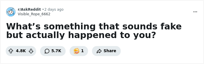 That vibe showed up when someone online asked, “What’s something that happened to you that sounds fake but unfortunately isn’t?” From questionable chance encounters to heartbreaking moments and eerie bits of luck, people poured out their personal histories. Keep scrolling to read the remarkable stories.