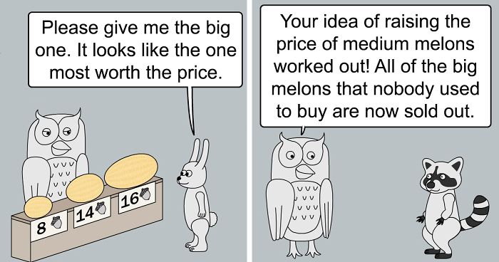 I’ve seen this before on Brain games. The experiment was that a small popcorn costed like 3 and a large was 7, so more people bought the small but when they added a medium for 6.50, more people bought the large. It’s called the Decoy Effect, or adding a “decoy” to get people to choose x over y.