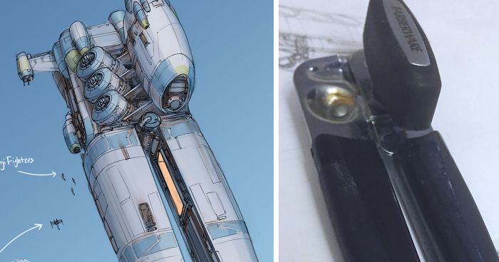 “I have been drawing and making spaceships out of Legos since I saw Star Wars in 1997,” Eric told Bored Panda. “I’m a huge science fiction and fantasy fan, and often I find myself daydreaming, turning the world around me into my own world. I’m always inspired by the great artists of science fiction like Moebius, Ralph Mcquarrie, Chris Foss, Syd Mead and others. I used to love looking at concept art books as a kid (and still do). Some of my favorite video games are Homeworld, Mass Effect, and Halo.”