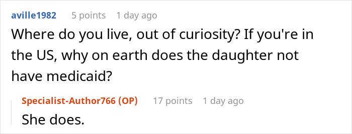 Load More Replies...I WAS this sister. Daughter with severe down syndrome, ex left the state because he couldn't handle it. No siblings for me tho. I survived off her social security and rented rooms for my daughter and I. Had roommates who were my daughters paid caregivers to help pay rent. Yes she went to school, but that didnt stop me losing my jobs for absences. So stopped working so I knew we'd have health insurance. State of AX didnt assist much. Sadly my daughter passed from covid last year. My life has started over.