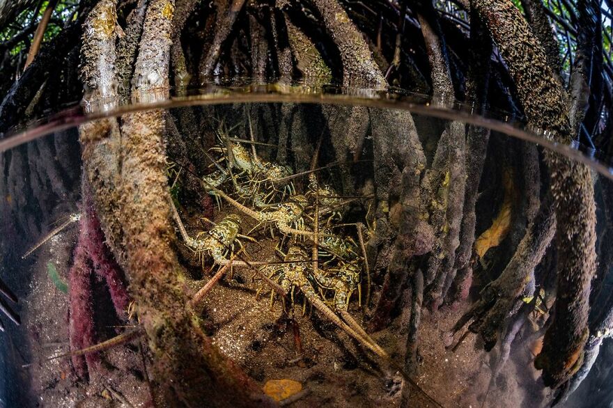 "The mangroves here support a rich biodiversity and provide a valuable nursery habitat for fish and crustaceans. Juvenile Caribbean Spiny lobsters are finding shelter within the submerged roots before their journey to nearby reefs."