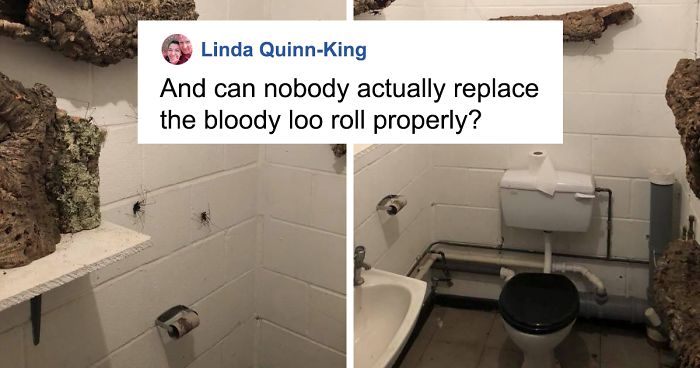The bathroom captioned with “Such a cool bathroom idea!!!” not only features tree logs for the spiders but the spiders themselves – and people are getting the creepy crawlies just looking at on their screens. Imagine the scene from Harry Potter: Chamber of Secrets where Ron and Harry are surrounded by giant spiders, welp it’s just like that but in the comfort of someone’s home.