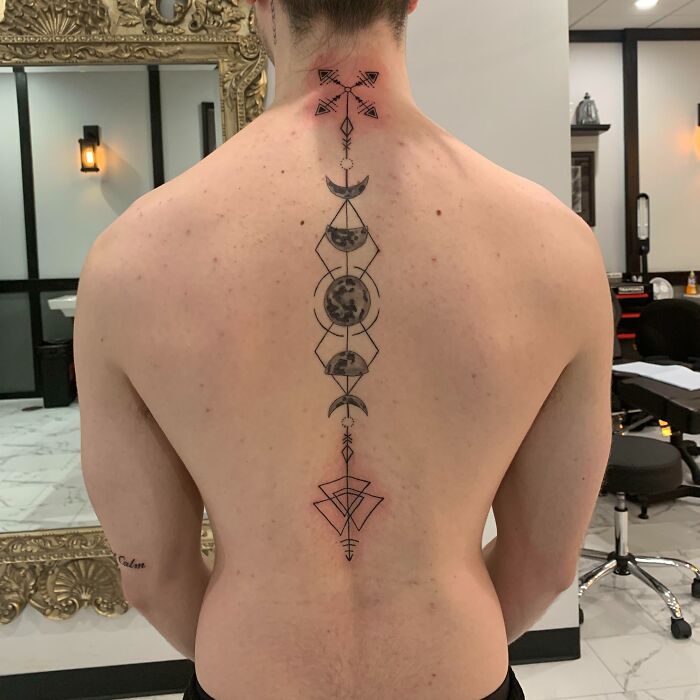 Beauty is pain, and spine tattoos are a perfect example of this. If you ever encounter a person with a spine tattoo, bear in mind that that individual is not afraid of anything. But on a serious note, tattoos going down the spine are extremely painful. Think 9/10 on the pain scale. This isn't surprising, considering the spine is a bony area full of nerve endings.