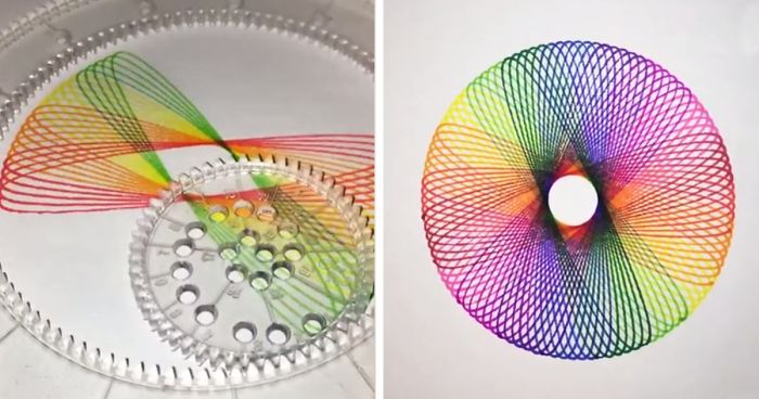 I was doing these 50 years ago with my Spirograph! One of my absolute favorite 'toys' ever!!!!!!!!!!!!!! But.....how is this viral? I was making intricate designs with mine at age 10. Ain't no big deal, very easy!