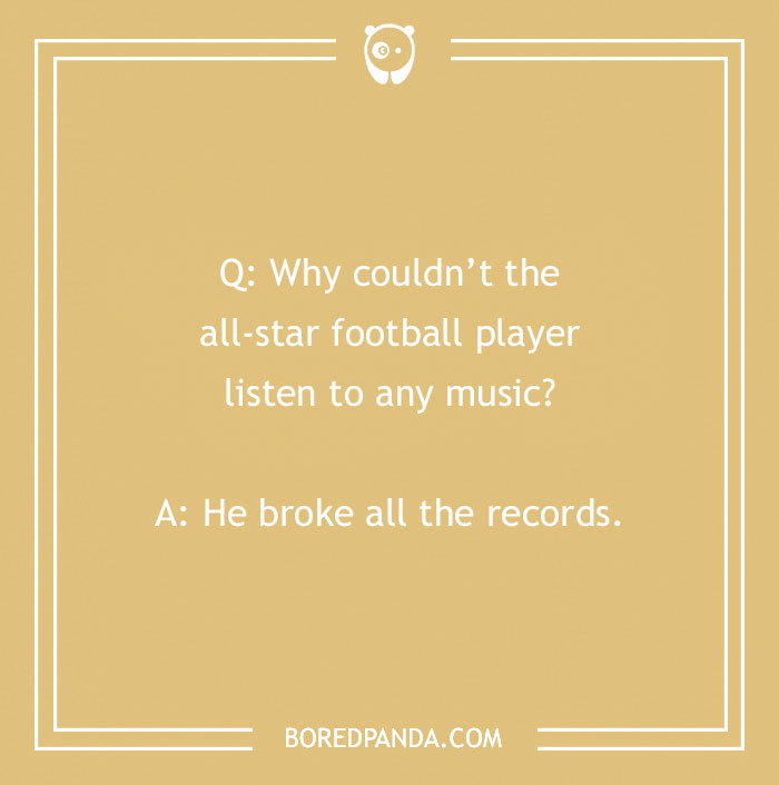 Why couldn’t the all-star football player listen to any music?