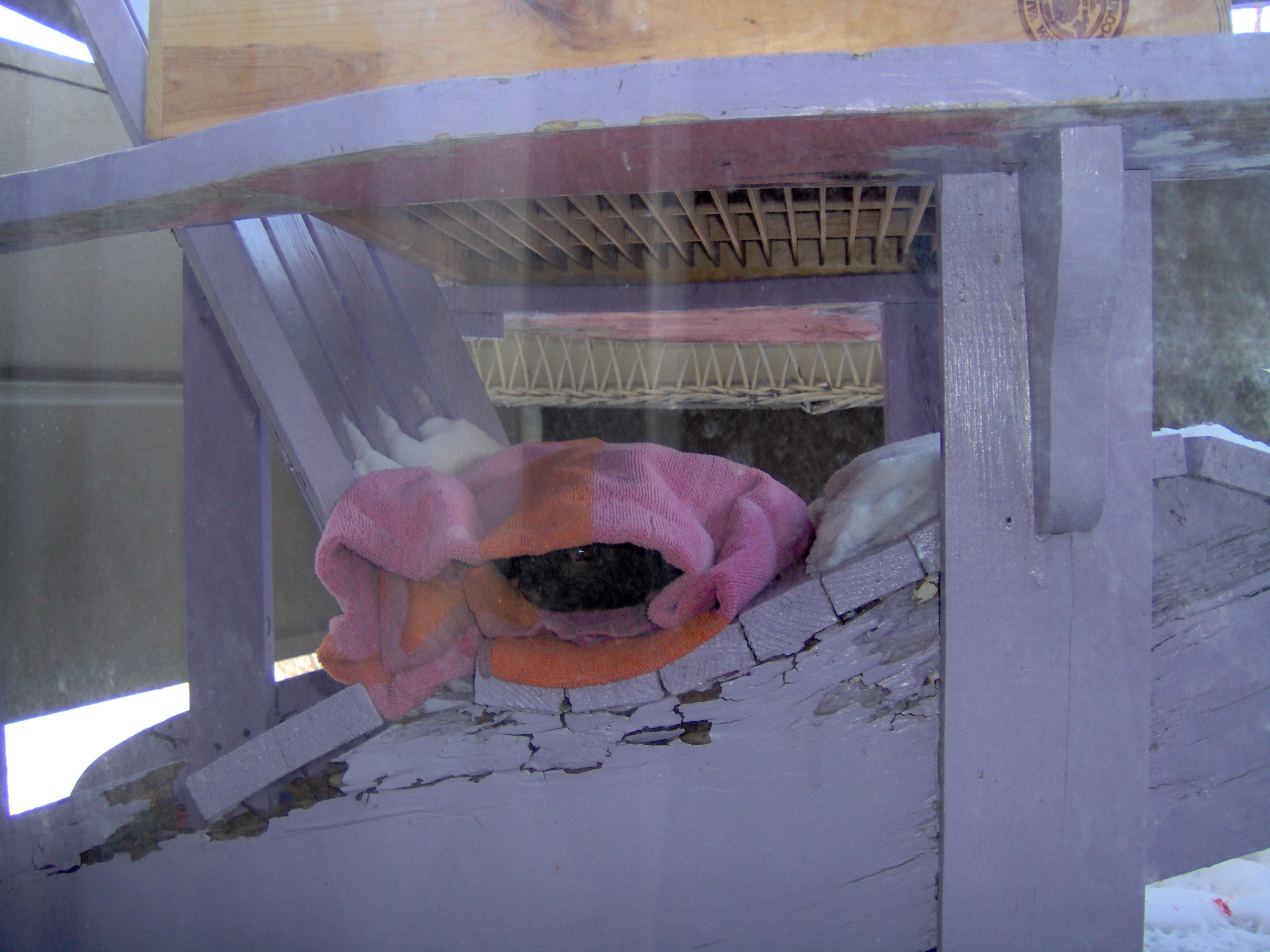 Left a folded up towel on the balcony chair, noticed it moving one day. Eventually added a roof to keep the snow off. Sitting on the couch one day with my boyfriend, noticed two little faces poking out watching us. They stayed all winter and moved on. pampered-s...386df2.jpg