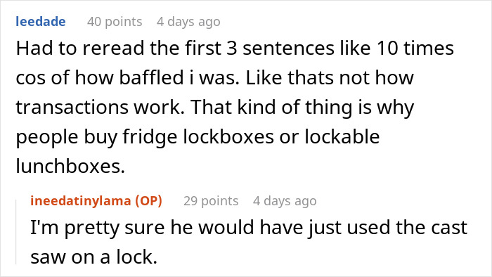 “There are even lunch boxes with locks on them to stop food thieves!” the redditor suggested that one way to really make sure that your coworkers stay away from your food is to physically stop them from doing this.