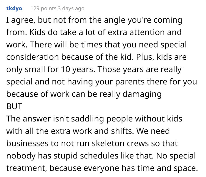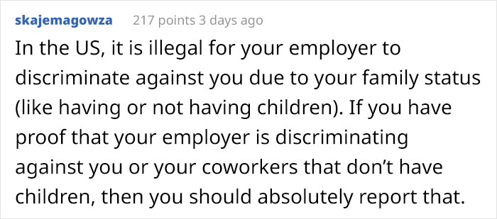 We’ve collected these stories for you to read so you can understand how workplace inequality functions when someone high up thinks that you don’t have a family if you don’t have kids yet. If you’ve ever seen someone being treated unfairly because they don’t have munchkins or have experienced it yourself, let us know in the comments.