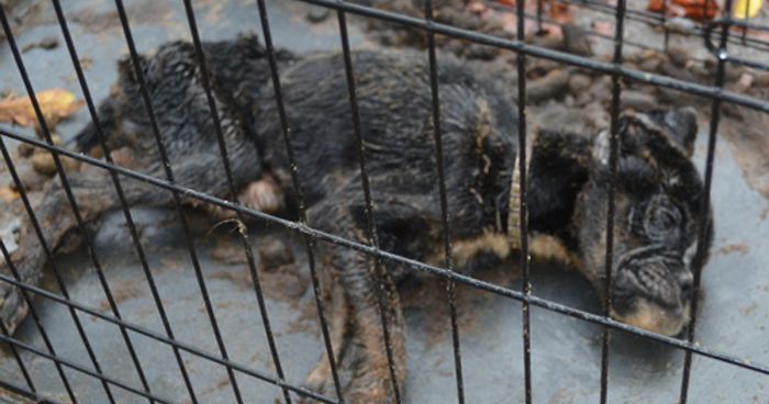 Back in November, officers received a call about what seemed to be a dead dog lying in a filthy crate