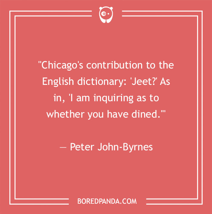 "Chicago's contribution to the English dictionary: 'Jeet?' As in, 'I am inquiring as to whether you have dined.'" — Peter John-Byrnes