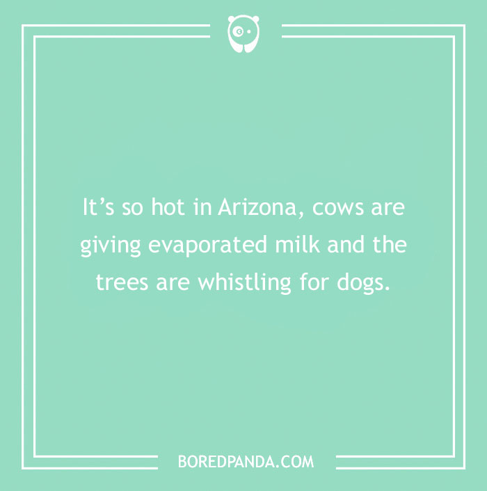 It’s so hot in Arizona, cows are giving evaporated milk and the trees are whistling for dogs.