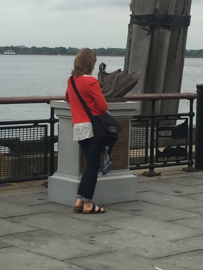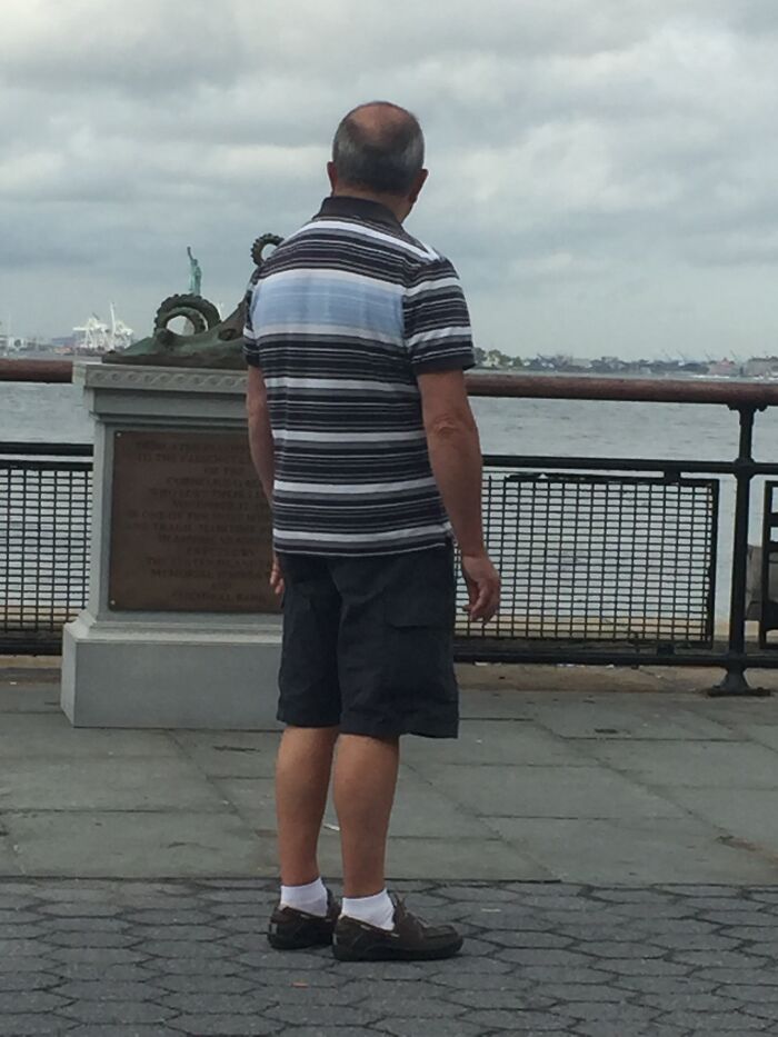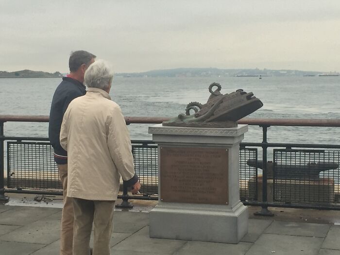 The Monument sits at the edge on the water in Batter Park Manhattan