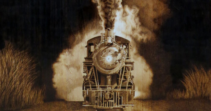 Stay-At-Home Mom Spends 60 Hours Woodburning Image Of A Train