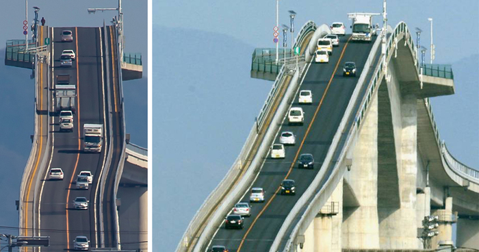If you’re looking for a rollercoaster that you can take in the safety of your own vehicle, then the 44m-tall Eshima Ohashi bridge in Japan might be your ticket – though it doesn’t have any spins or loops, it has an extraordinarily steep incline that can seem quite fun (or terrifying) when approaching it head-on.