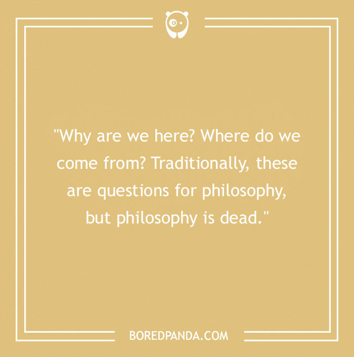 "Why are we here? Where do we come from? Traditionally, these are questions for philosophy, but philosophy is dead."