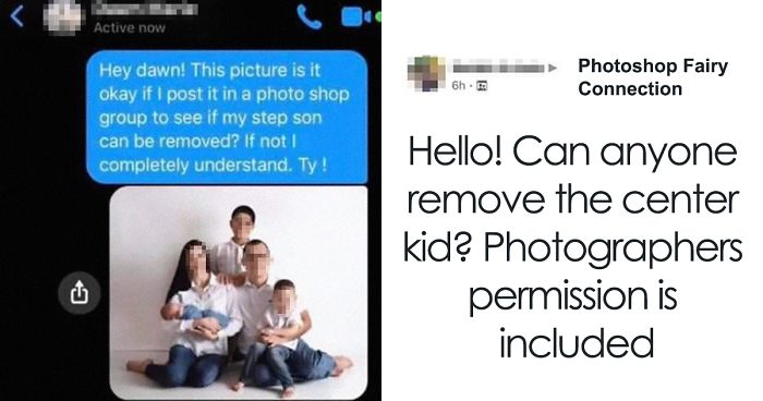 One Twitter user shared the screenshots of a mom’s request to edit out her stepson