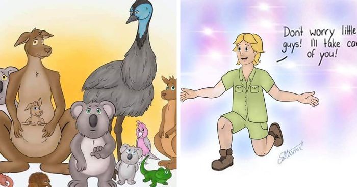 People Are Tearing Up Over This Cartoon Of Steve Irwin Welcoming Animals Killed In The Australian Bushfires