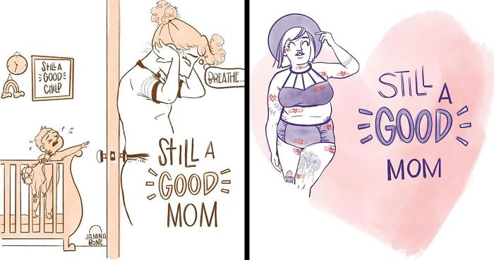Over time, however, Bone has managed to get out of the rut. Now, the mom-of-two is encouraging "imPERFECT moms" to ditch social norms and embrace their true badass selves. One of the ways she's doing it is illustrating everyday situations. Through her pictures, Bone reminds people that a woman can have doubts and still be a good mom. She can feel disappointed and still be a good mom. Most importantly, she can be herself, forget the pseudoperfect happy-go-lucky mentality and still be a good mom.