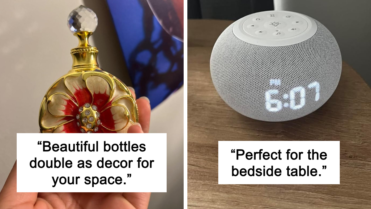 Review: "Perfect for the bedside table. Small, with a great variety of options for dimness level, sleep sounds, and assorted colors of night lights." - Boesky