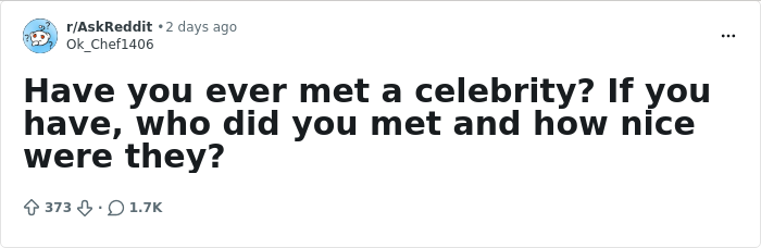 That’s why it’s not surprising that so many people feel tempted to interact with them when the opportunity arises, even if the famous person isn’t always in the mood for it. On Reddit, people have been sharing which celebrities they’ve met and how nice—or not so nice—those encounters turned out to be. Scroll down to see what your favorites are like when the cameras aren’t rolling.