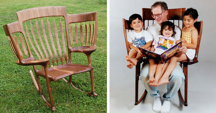 Master craftsman Hal Taylor loves to read to his children, but when his third child, Rose, was born, he ran into a problem – his three children wouldn’t fit in his lap when he went to read to them on his rocking chair! As luck would have it, Taylor just so happens to be one of the best rocking-chair craftsmen in the world, so he created a beautiful chair that could fit all of his kids!