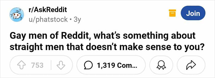 For instance, a Reddit thread explored the topic: things gay men don't understand about straight men. It all started when a user sparked a lively discussion by asking, "Gay men of Reddit, what’s something about straight men that doesn't make sense to you?" And the responses were both intriguing and eye-opening. Below, we’ve compiled some really impressive answers for you, Pandas.
