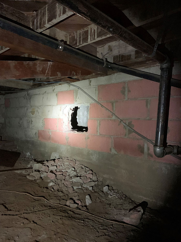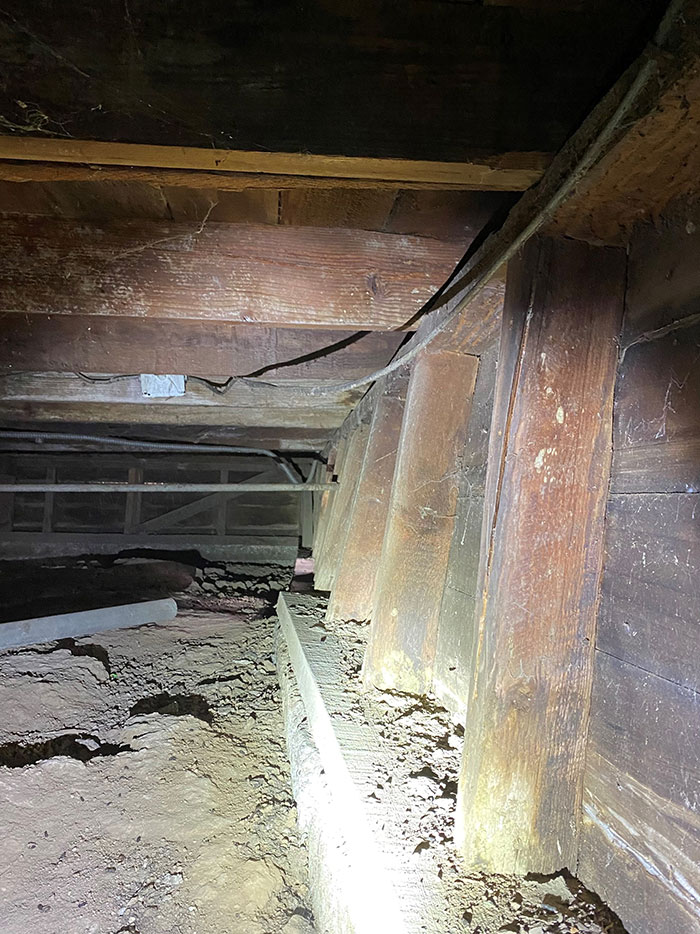 A note of warning, dear Pandas: don't do this at home! You have to be a proper structural inspector with the right training, skills, and gear to go poking about creaky building foundations.