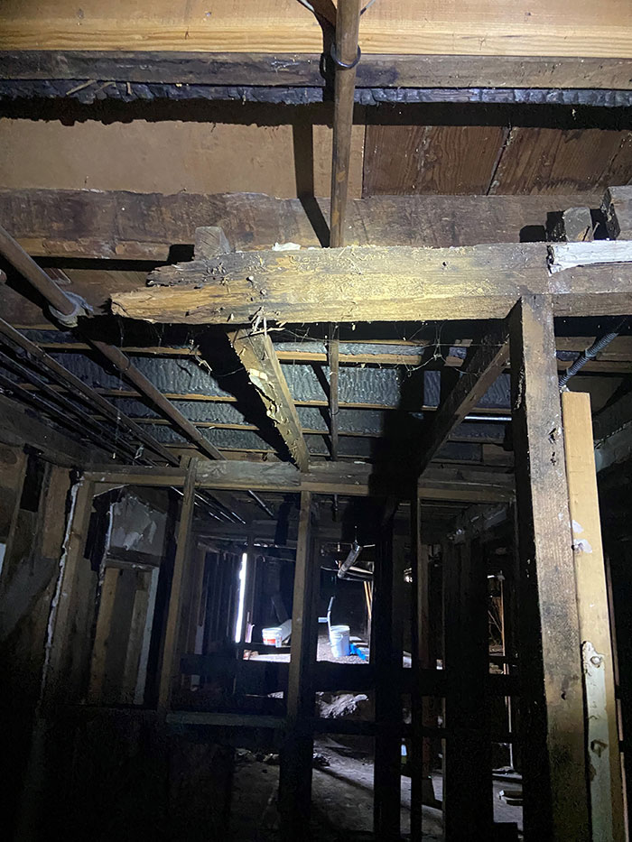 Here you can see two joists hanging down after snapping in half from water damage. (Image 4)