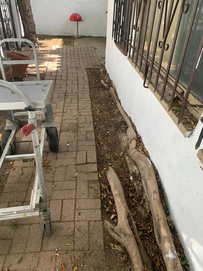 Yes, that huge tree near the house is gorgeous...but don't forget that a weed can break through a concrete paving slab