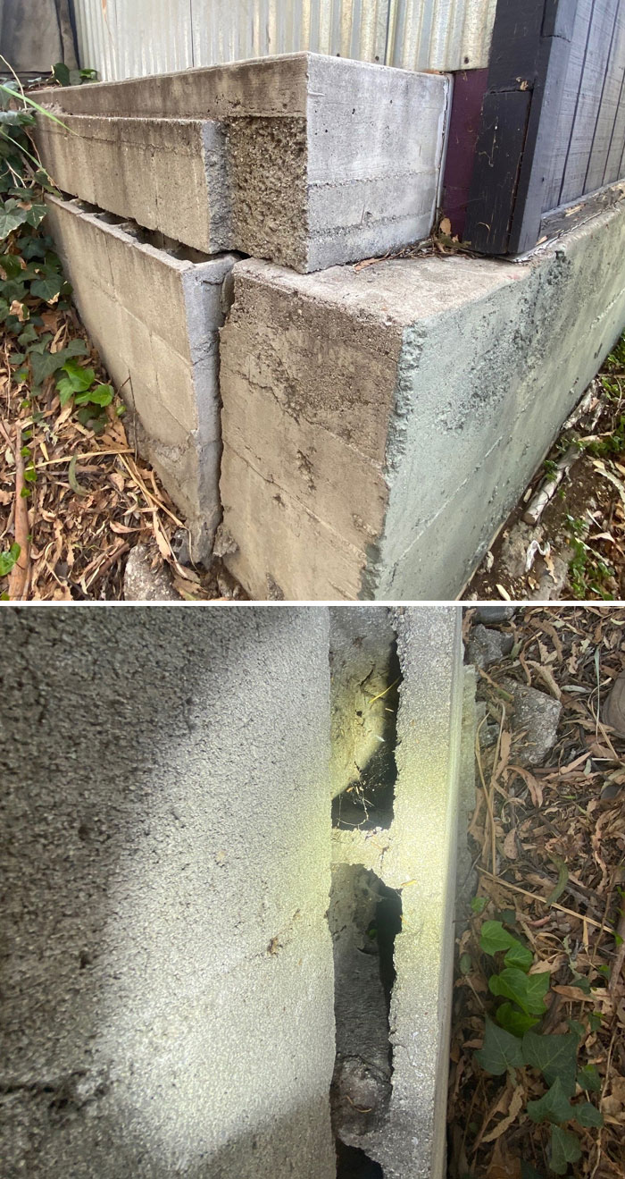 In March 2020, Derek Marier from Alpha Structural told Bored Panda about the “most nightmarish inspection” they’d done that by that point that year. It was a visit to a property in Portuguese Bend down on the Palos Verdes Peninsula. “First off, because of soil conditions and high landslide risks, not much structural work can be performed there," Derek started.